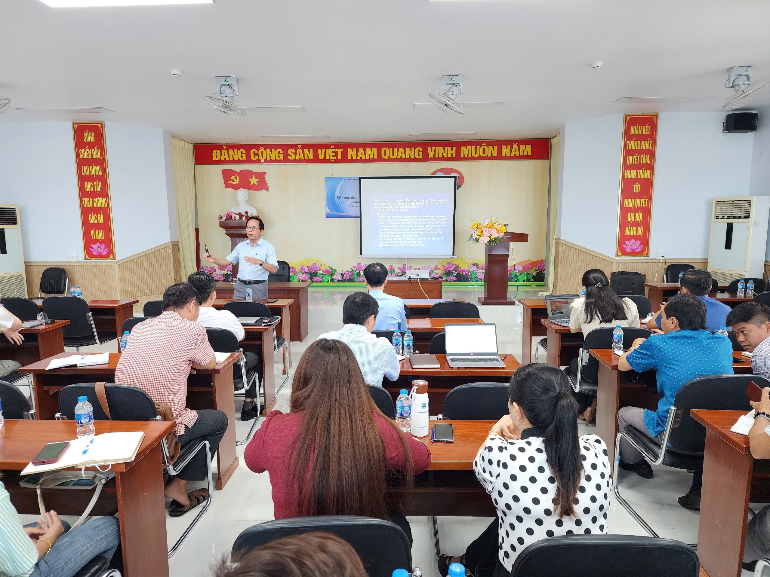 Quang cảnh lớp tập huấn kỹ năng đưa tin Đại hội Đảng