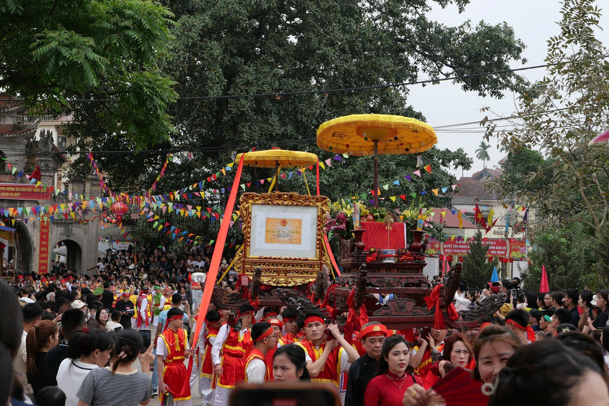 Anh Đỗ Hữu Thuấn, 29 tuổi, công nhân, người đi làm ăn xa về dự hội: “Tôi làm trên Hà Nội quanh năm, bận rộn lắm, nhưng đến 12 tháng 3 Âm lịch là bỏ hết về quê. Vì ở thành phố người ta đi lễ cầu tài, còn về đình làng mình là để tạ ơn tổ tiên, để không quên mình là ai. Ngày hội không chỉ là một nghi thức - mà là một lời nhắc về gốc gác của mỗi người.”