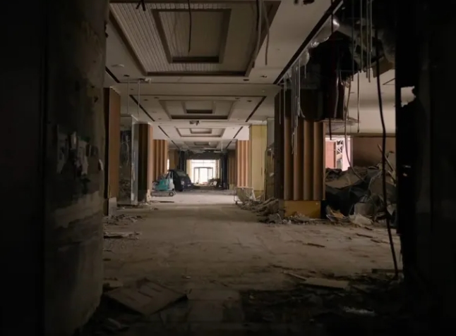 Hiện nay: Bây giờ nó trở thành một vùng đất hoang với những mảnh vụn và bụi vương vãi khắp nơi.