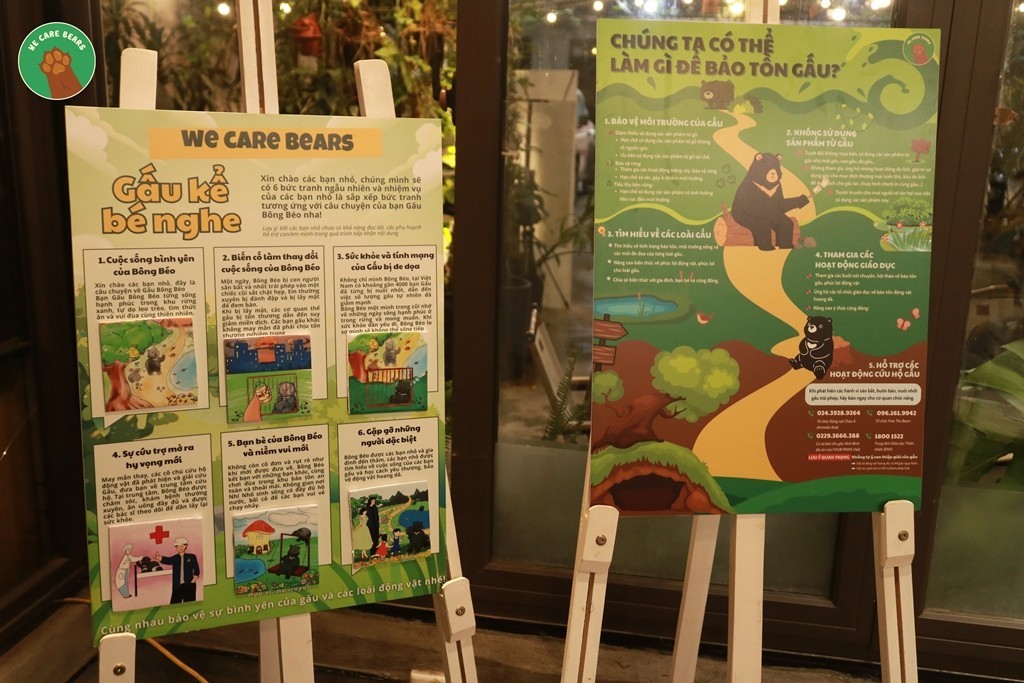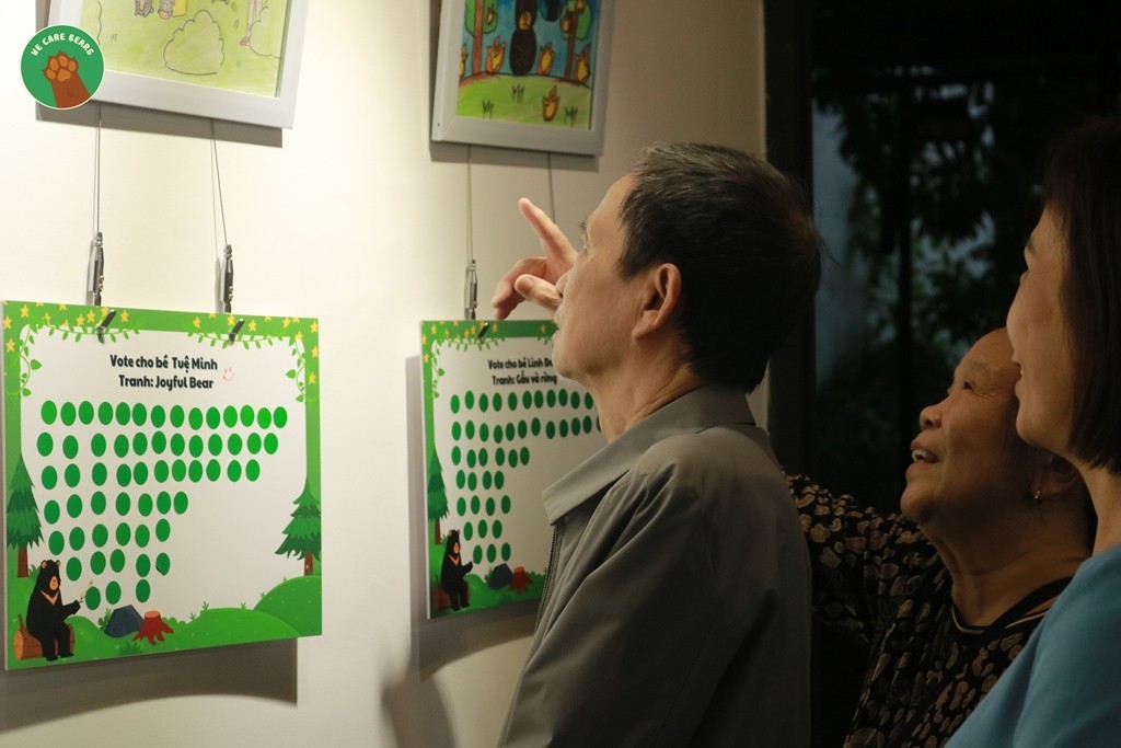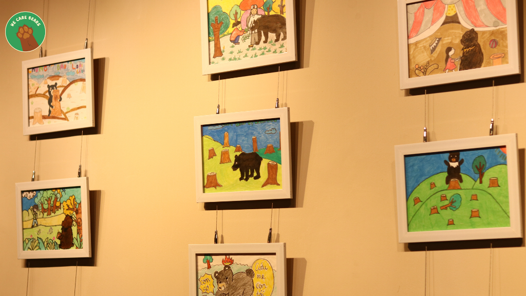 Mỗi bức tranh đều thể hiện nhận thức và góc nhìn của các em về chủ đề bảo vệ gấu trước nạn nuôi nhốt, lấy mật trái phép. Trong khu trưng bày tranh, ban tổ chức cũng bố trí các bảng infographic nhằm cung cấp thông tin cơ bản về hai loài gấu đang được bảo vệ tại Việt Nam - gấu chó và gấu ngựa.
